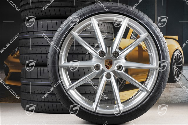 Porsche 911 992 20"+21" Sommerräder Satz Carrera S, Felgen 8,5J x 20 ET53 + 11,5J x 21 ET67 + Sommerreifen 245/35 R20 + 305/30 R21, mit RDK-Sensoren.